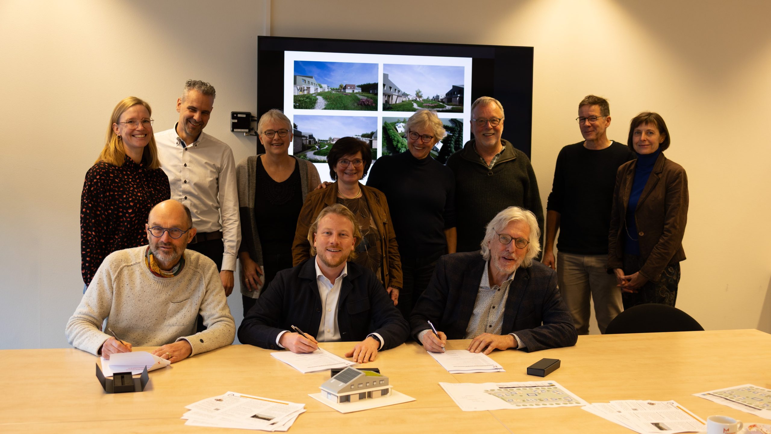 Op 18 december ondertekenden wethouder Robin van Ulzen en het bestuur van Vereniging Erve Bosco een samenwerkingsovereenkomst voor de bouw van 25 woningen en een gemeenschappelijk gebouw in Nieuwveense Landen. Met hun bijzondere project streven de leden van Erve Bosco naar wonen in een groene omgeving die erop gericht is om elkaar te ontmoeten, met ruimte voor privacy en met als doel om meer samen te leven met je buren.