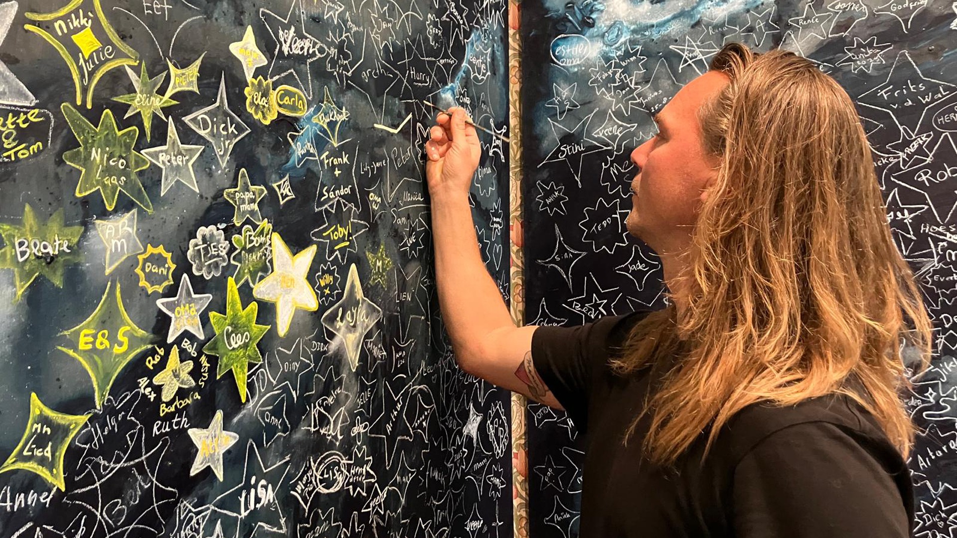 In de museumzaal van ANNO ontstaat een ontroerend ritueel: mensen schrijven namen, delen herinneringen, en laten tranen of glimlachen toe. “Gemis is donker, maar samen maken we het lichter,” zegt Boxem. Zijn zogenoemde Team-Artworks trokken al ruim 31.000 deelnemers door het hele land; in Zwolle krijgt het idee een persoonlijke, lokale betekenis.
