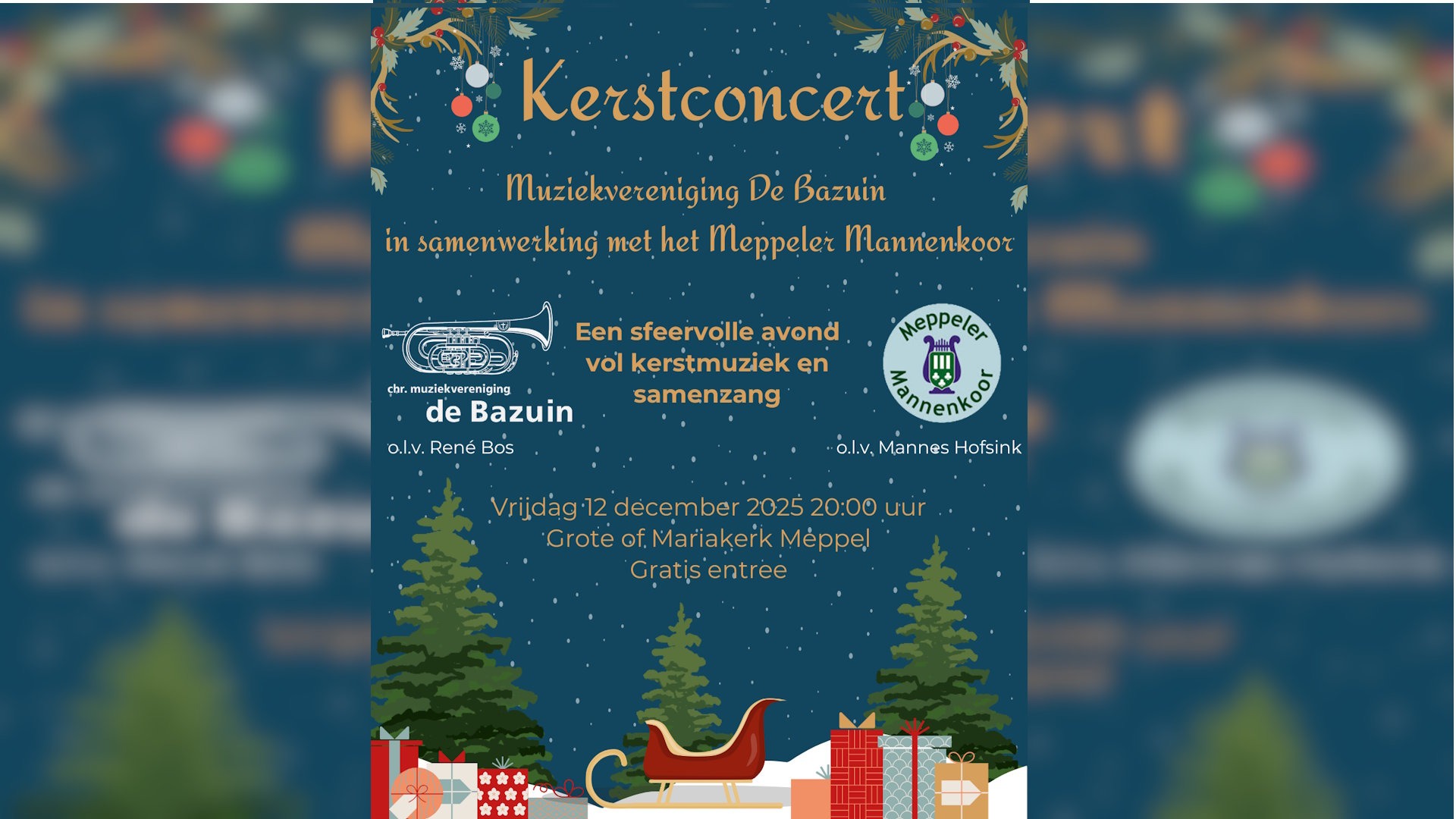 Kom genieten van een sfeervol kerstconcert op vrijdag 12 december vanaf 20.00 uur in de prachtige Grote of Mariakerk aan het Kerkplein in Meppel! Muziekvereniging “De Bazuin” en het Meppeler Mannenkoor zorgen samen voor een sfeervolle avond vol kerstmuziek en samenzang. De toegang is gratis. Neem je vrienden en familie mee en mis dit bijzondere kerstconcert niet!