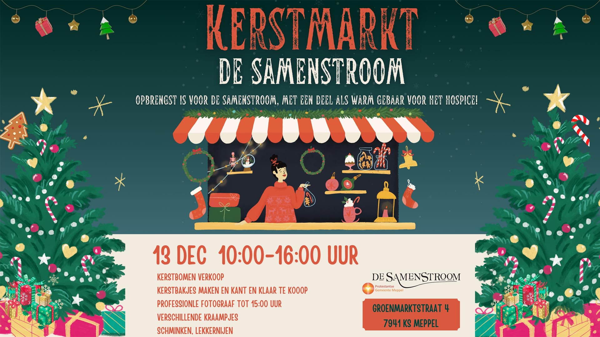 Op zaterdag 13 december 2025 organiseert De Samenstroom in Meppel voor de tweede keer een sfeervolle kerstmarkt. Bezoekers zijn van 10.00 tot 16.00 uur welkom voor kerstbomenverkoop, creatieve kerstbakjes en diverse ambachtelijke kraampjes met lekkernijen en cadeaus. Ook kunnen bezoekers een professionele foto laten maken tot 15.00 uur. Kinderen en volwassenen worden uitgenodigd een wens op te hangen in de wensboom en de kerstvrouw te ontmoeten.