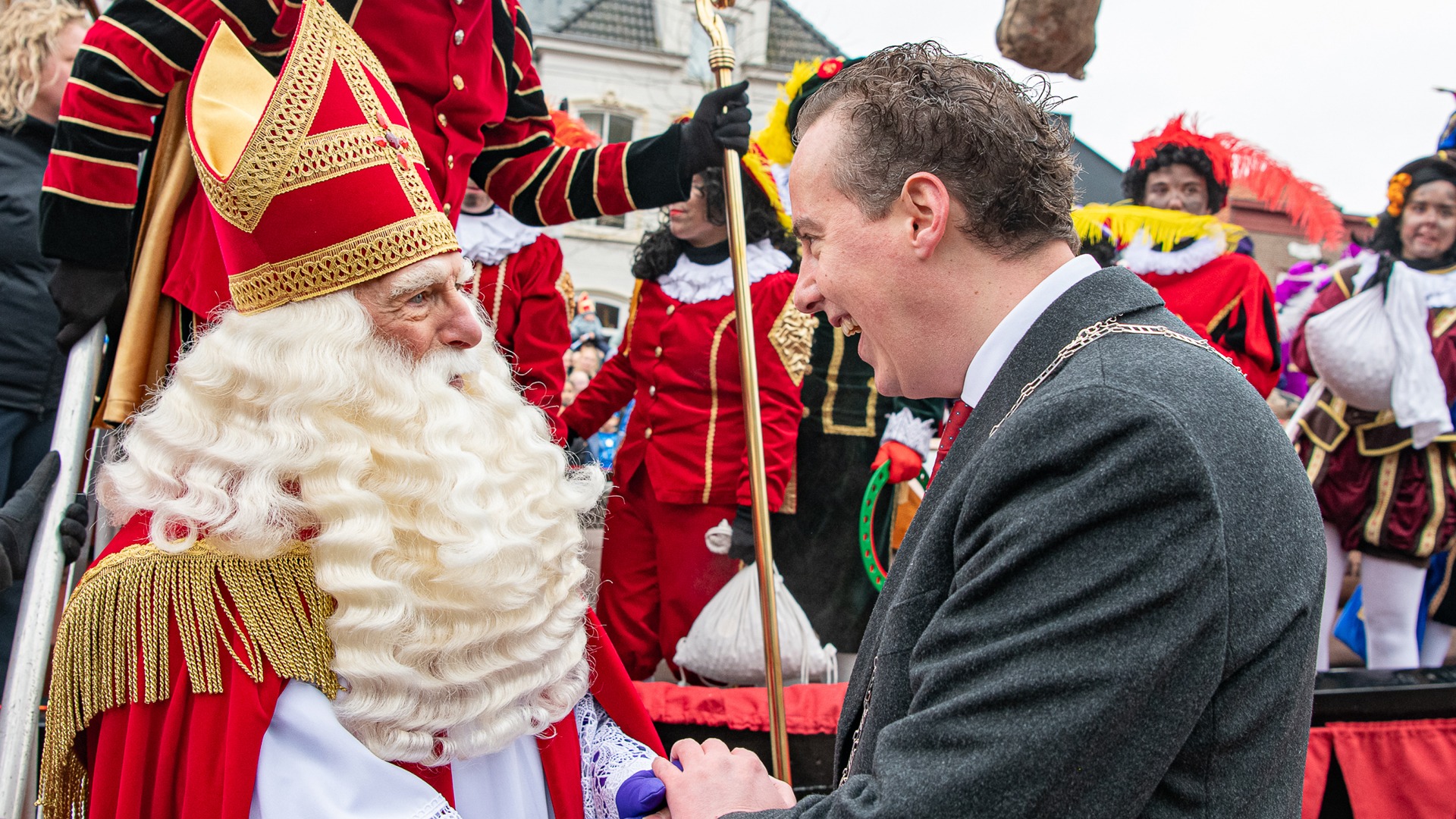 Na alle officiële plichtplegingen en lieve woordjes ging de Sint met zijn gevolg op zijn paard met gevolg door de stad naar het Kerkplein. Waar Jochen van Gelder klaar stond om er samen met de Sint en zijn gevolg er een wervelende kindershow van te maken. Een mooi begin van een gezellige tijd vol lichtjes, liedjes, verlanglijstjes en knusse momenten samen. Welkom Sinterklaas — we hebben naar u uitgekeken!