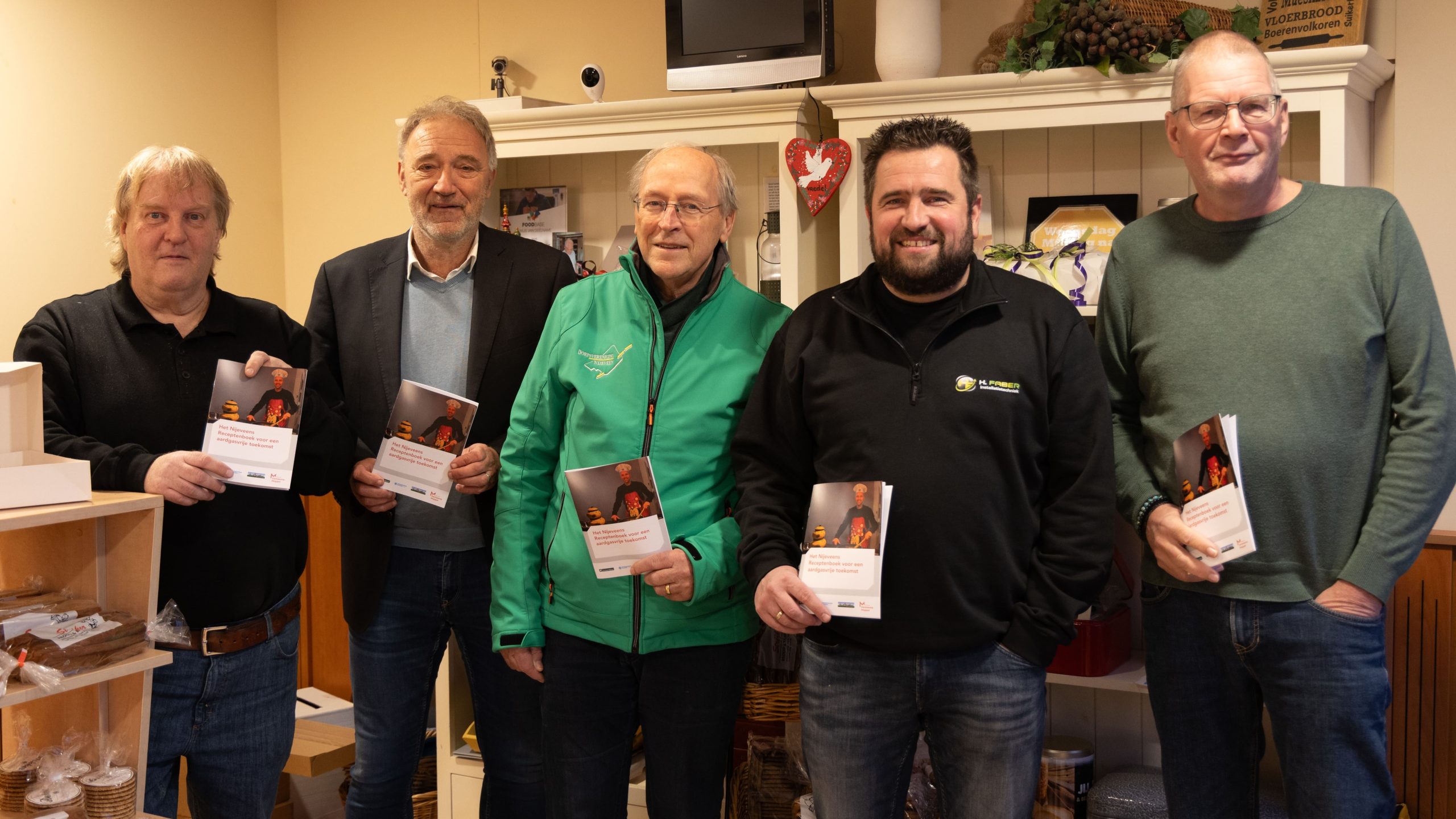 Op dinsdag 2 december overhandigde wethouder Alfred Peterson de publieksversie van het Warmteplan Nijeveen aan plaatselijke bakker Strijker. De wethouder overhandigde het warmteplan samen met samenwerkingspartners Cor Koster namens Energiecoöperatie Duurzaam Nijeveen, Klaas Neutel namens Dorpsvereniging Nijeveen en Henri Faber namens Ondernemend Nijeveen.