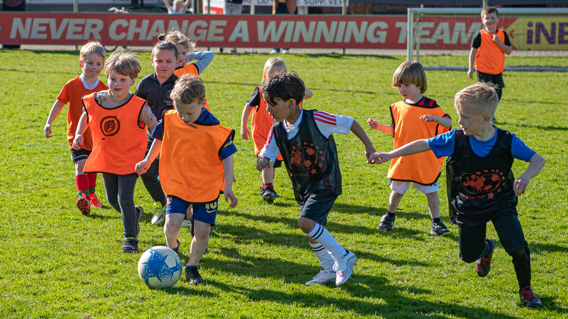 Hierna ging de jeugd in partijtjes tegen elkaar voetballen. Daar spatte het enthousiasme vanaf en er werd fanatiek gestreden om de winst. Na afloop mochten de kinderen met de paashaas op de foto.